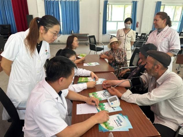 团队成员还为乡亲们开展了肾病、中医治疗、呼吸等科普知识讲座3场,并开展了义诊活动。专家们耐心地为乡亲们解答疾病的预防和日常保健常识,耐心细致讲解科普知识,为群众进行免费测量血压,指导合理用药,并对常见的慢性病、多发病的预防和治疗提供专业的指导,倡导文明健康生活方式。专家为患者开具处方,在五十一团医院的助力下可领取免费药品,义诊活动受到了社区工作人员及乡亲们的一致好评。