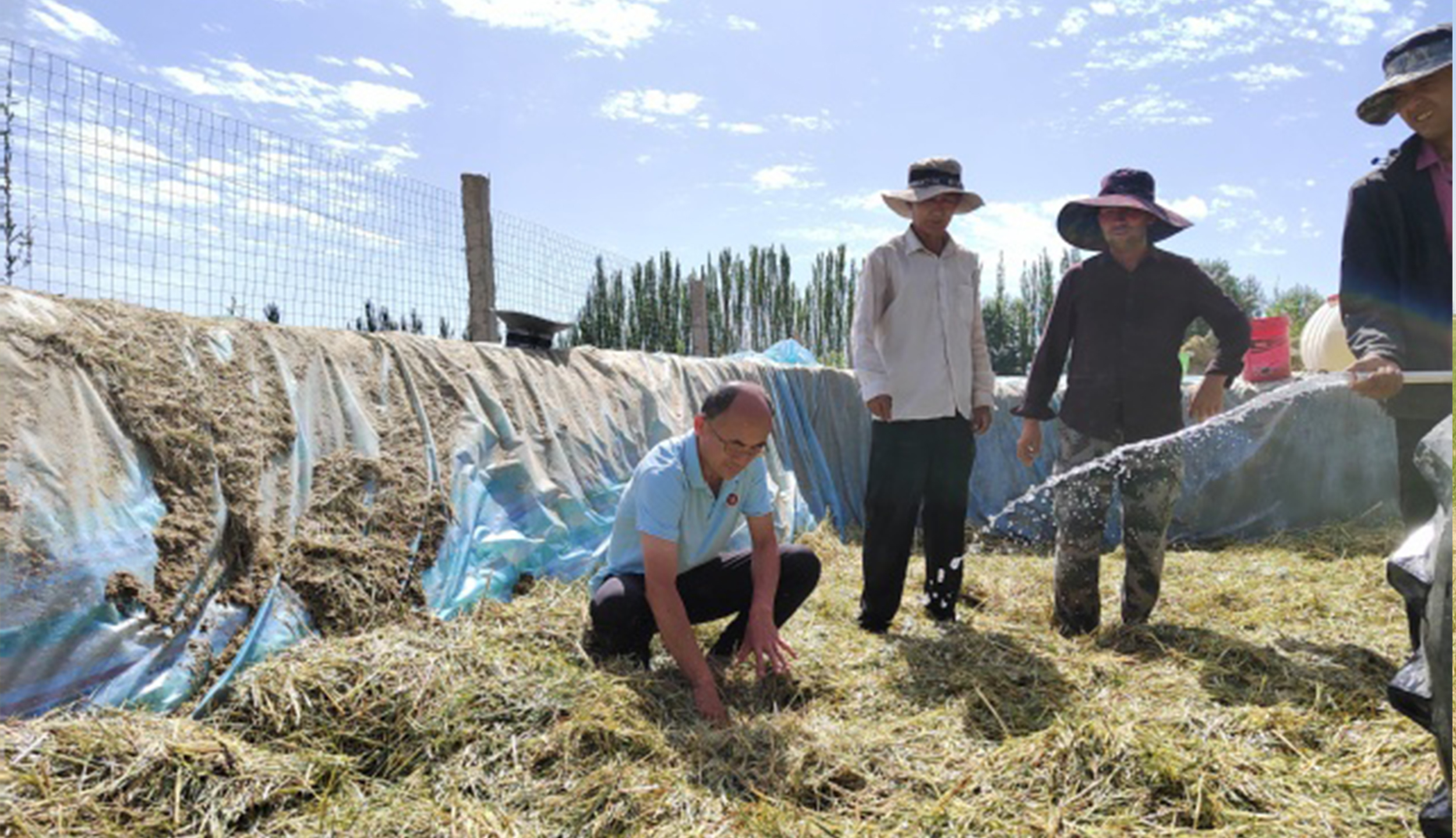 七月,烈日炎炎,石河子大学饲草料综合利用科技特派员团队成员奔波在十四师各连队和乡村,指导秸秆微贮饲料化利用,持续推进连村共建共兴。