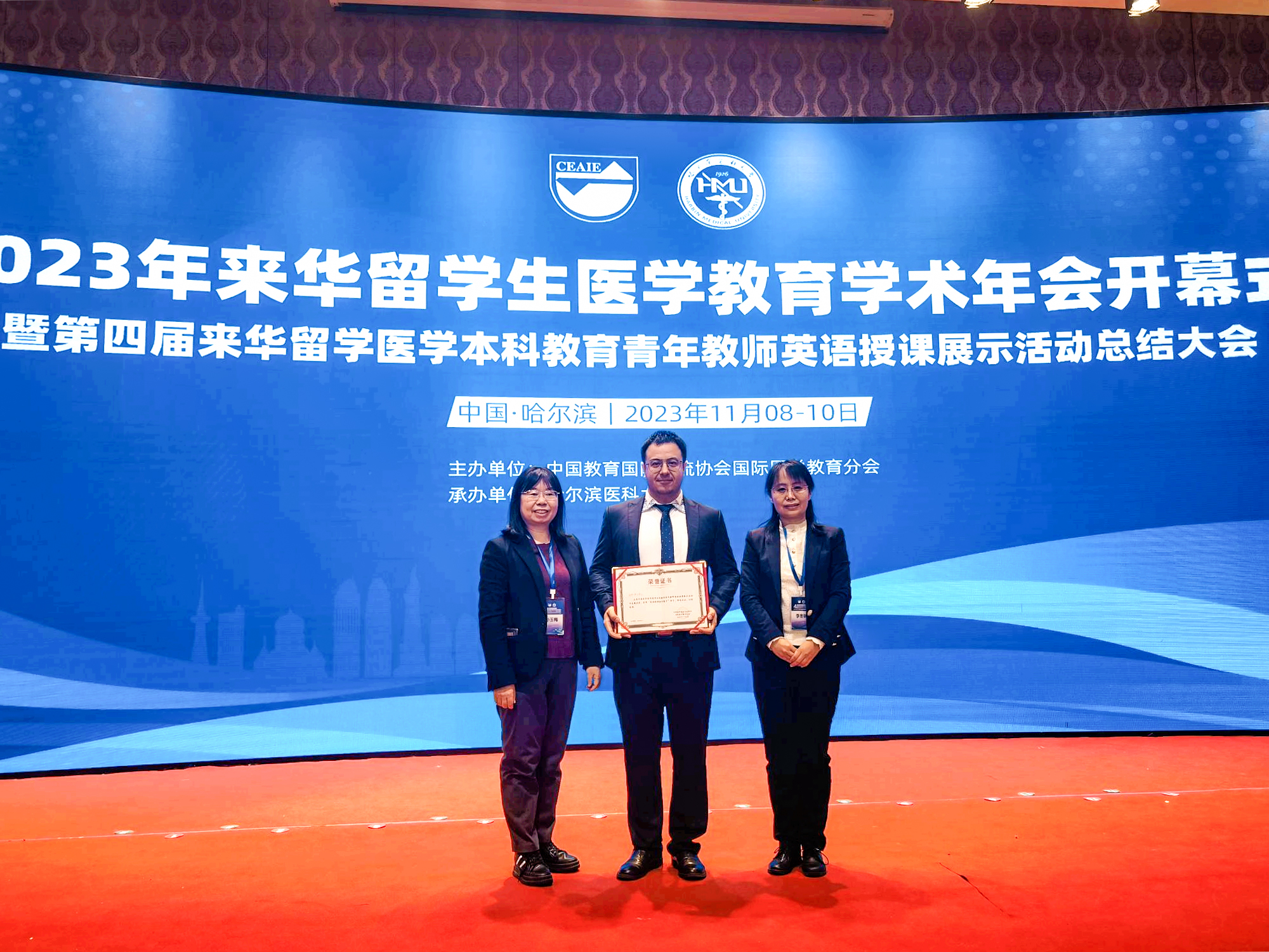 11月8日至10日,由中国教育国际交流协会国际医学教育分会主办,哈尔滨医科大学承办的全国“第四届来华留学医学本科教育青年教师英语授课展示活动”在哈尔滨举行。来自全国49所高校的青年教师参加了此次全英文授课展示,活动设置了精英、能手与新秀称号。我校医学院基础医学系生物化学教研室阿米尔·阿卜力孜老师荣获授课展示活动英语授课能手称号。