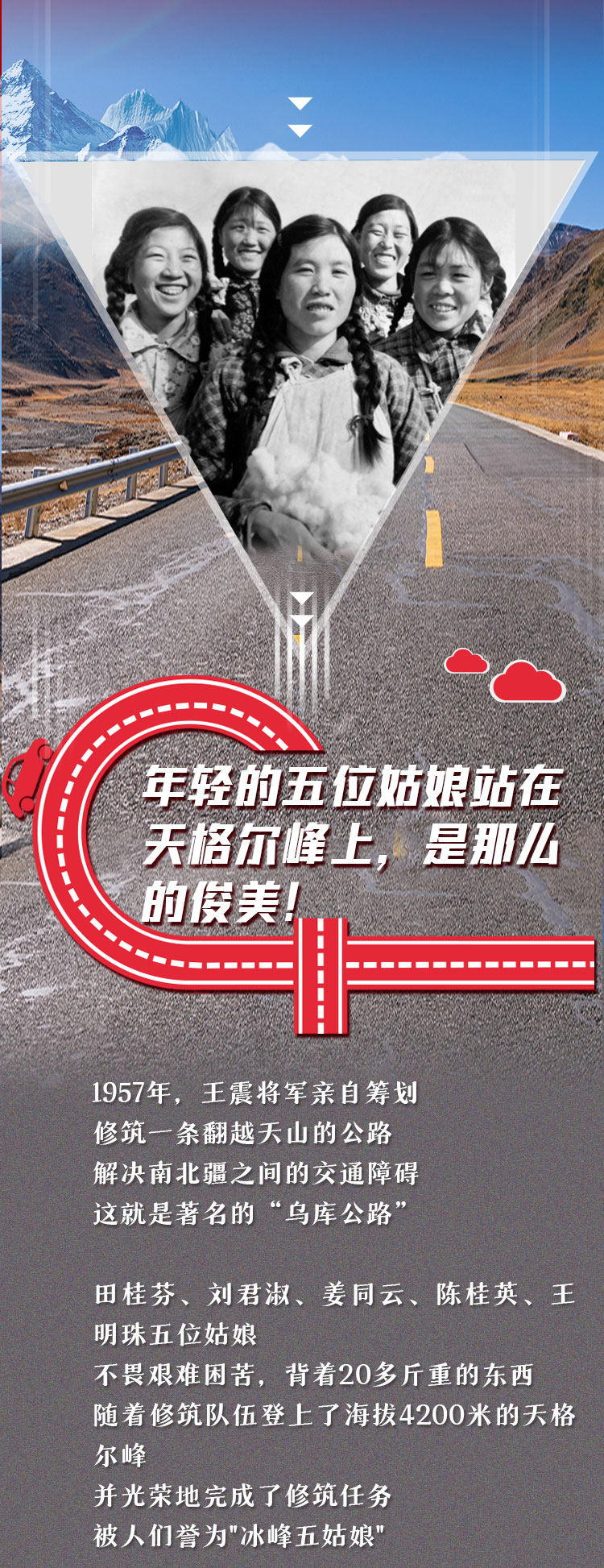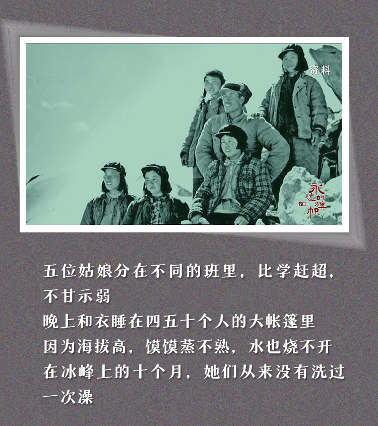 年轻的五位姑娘站在天格尔峰上 是那么俊美