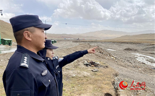 巴合提白克·库瓦和妻子托合提罕·马旦木白克观察周边情况。人民网 李龙 摄