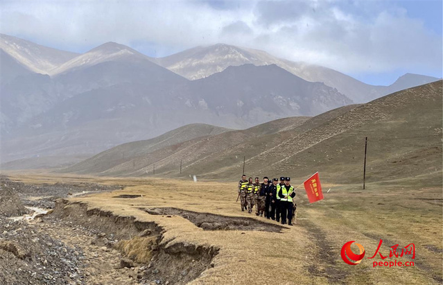 护边员们在边境线上开展巡逻。人民网 李龙 摄