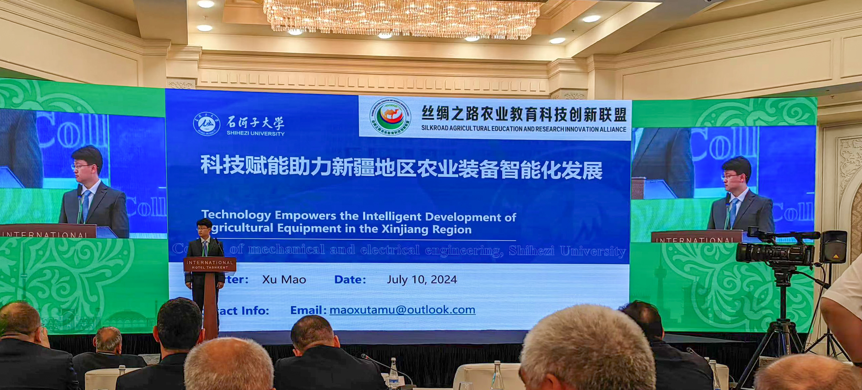 乌兹别克斯坦农业部部长,高等教育、科学和创新部部长,生态党中央委员会执行委员会主席等政府官员出席会议并讲话,中国驻乌兹别克大使馆大使于骏到会致辞。年会论坛上,来自世界各地的39名代表进行了发言,我校农学院副院长刘立军和机械电气工程学院副院长毛旭分别在论坛上代表学校作了题为“石河子大学农学院依托国际科技合作基地助力棉花科技创新”“科技赋能助力新疆地区农业装备智能化发展”的发言。