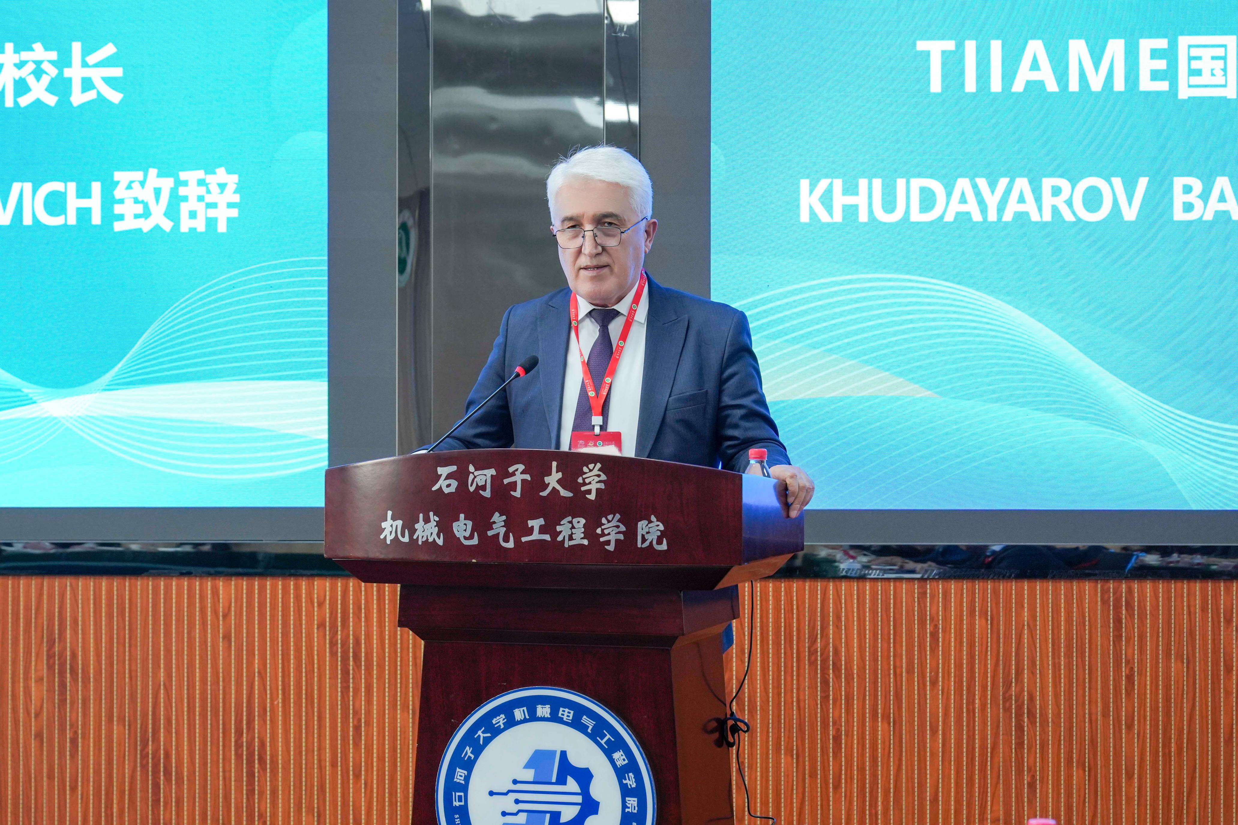 徐善东代表石河子大学向胡达杨洛夫一行以及与会嘉宾的到来表示热烈欢迎。他介绍了学校近年来取得的办学成果,表示石河子大学始终积极响应“一带一路”倡议,深化与“一带一路”沿线国家高校、科研院所的科技合作,其中已与乌兹别克斯坦开展了广泛的科研合作和人文交流。本次论坛的举办将进一步推动学校融入国家向西开放总体布局,加强中乌两国智能农业装备产业技术交流,希望与会专家在这里碰撞思想,增进互信,共同探索棉花产业高质量发展的新技术、新方法,推动棉花数字化、数智化建设与发展,为新疆乃至中亚的农业现代化建设贡献智慧和力量。