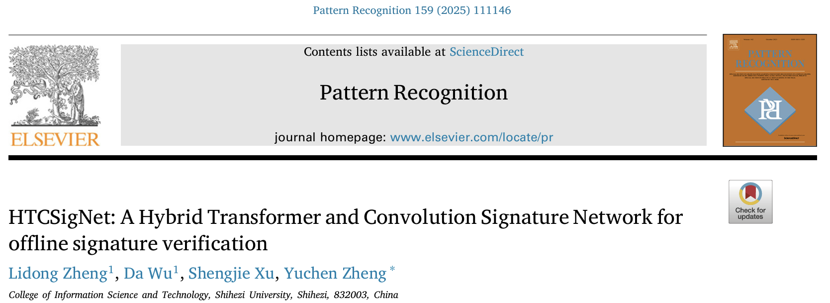 近日,我校信息科学与技术学院(网络空间安全学院)郑煜辰副教授团队在离线手写签名鉴定领域研究中取得新进展,研究结果分别以“HTCSigNet: A Hybrid Transformer and Convolution Signature Network for Offline Signature Verification”(HTCSigNet:用于离线签名鉴定的混合Transformer和卷积签名网络)发表于《Pattern Recognition》(中国科学院一区TOP,IF:7.5)和“Learning Discriminative Representations by a Canonical Correlation Analysis-based Siamese Network for Offline Signature Verification”(基于典型相关分析的孪生网络学习判别表示用于离线签名鉴定)发表于《Engineering Applications of Artificial Intelligence》(中国科学院二区TOP,IF:7.5)。