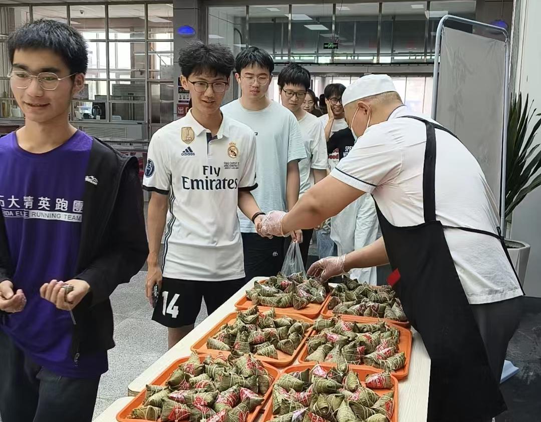 后勤服务中心饮食中心精心筹备“浓浓端午情 悠悠飘粽香”活动。在各校区餐厅均开展免费赠粽子活动,共赠送出4300份粽子,开餐期间紫菜蛋花汤、绿豆汤不间断供应。为照顾到每个就餐的学生都能吃到粽子,餐厅特意在各个窗口摆放,方便学生领取,确保每一位同学都不错过这份节日福利。
