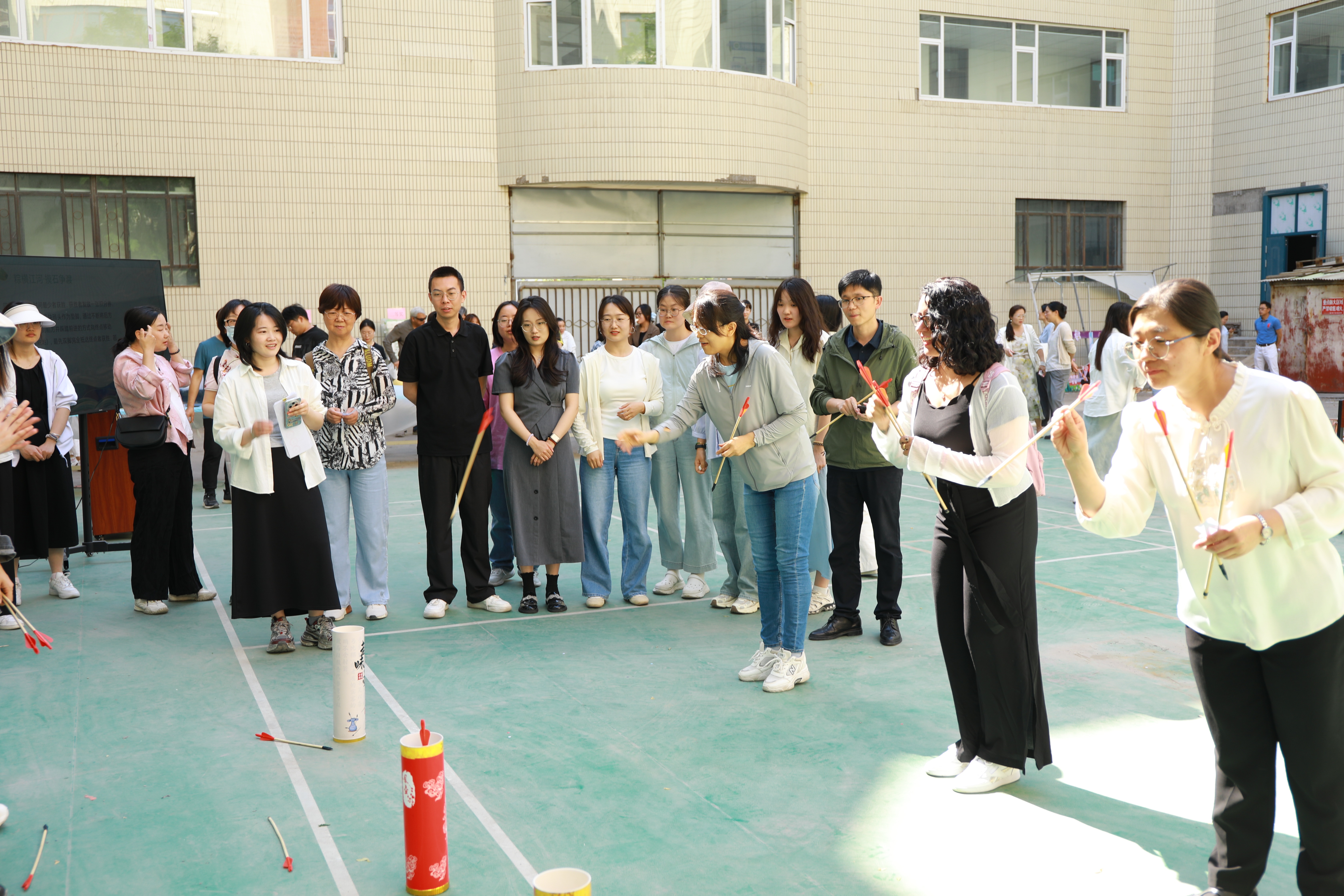 端午知识竞答题目巧妙融合端午节历史渊源、民俗文化、诗词与民族团结知识、党的民族政策,师生们踊跃抢答,在竞争中拓宽知识储备;“协作闯关”游戏中,每组8人分工明确,吹气球、夹球前进、踩爆气球、投壶一气呵成,在充满挑战的任务里,团队协作能力与默契程度得到充分考验,团结的力量在欢乐中彰显。