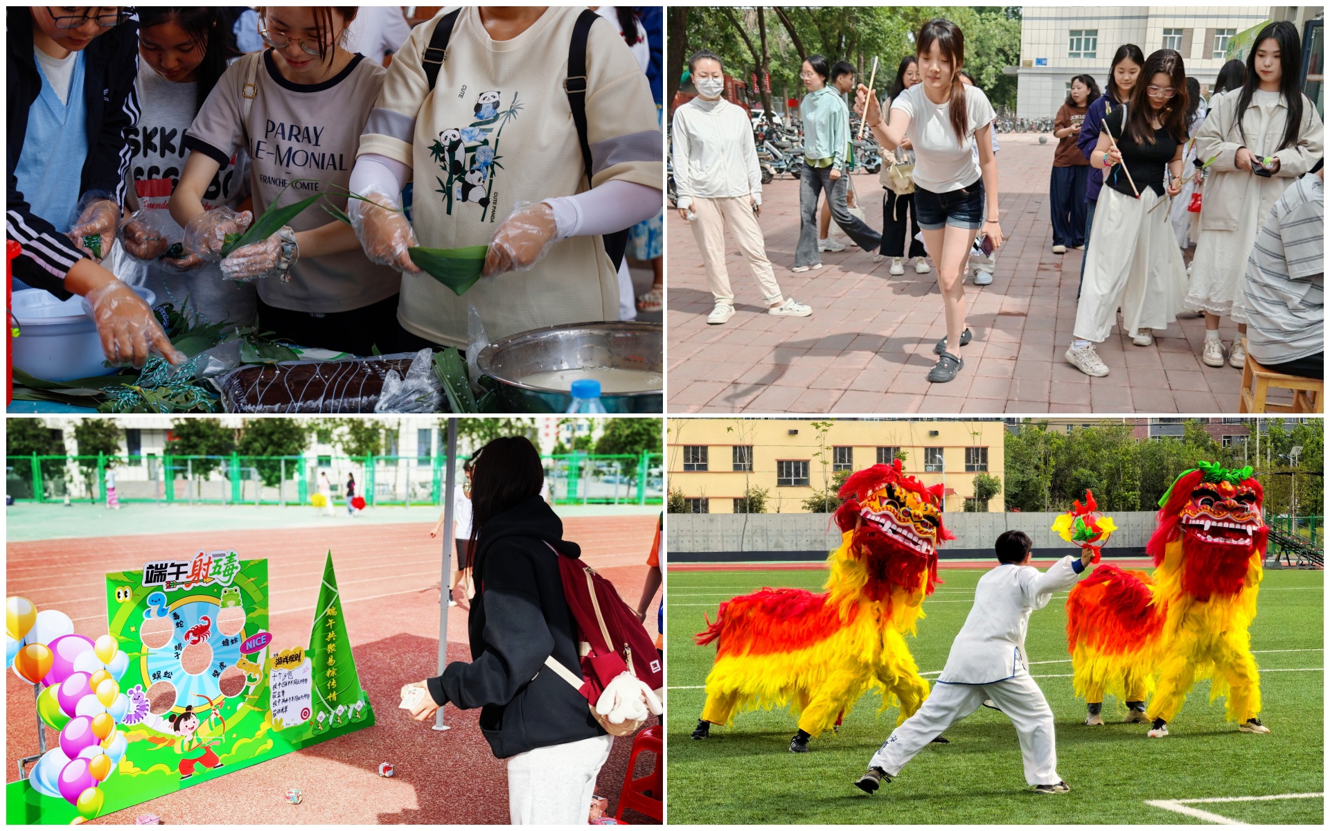 活动在“粽艺传承”中拉开帷幕,计算配比、折叶装米,在大家的协作下,一只只端正的粽子迅速成型。在诗词雅会区,学子们以诗为舟,在平仄之间带师生穿越千年,感受文脉的生生不息;“投壶会友”活动更是古趣新玩,完成了一场跨学科的对话。“五毒退散,福佑安康”“圈粽你,钓粽你”“制作艾草包”“五色织梦·千年祈愿”等活动也吸引众多师生参与,大家在传统文化中感受多元的碰撞。同学们精心准备的中国武术表演和舞狮表演将活动氛围推向高潮,展现了传统仪式的新生机。