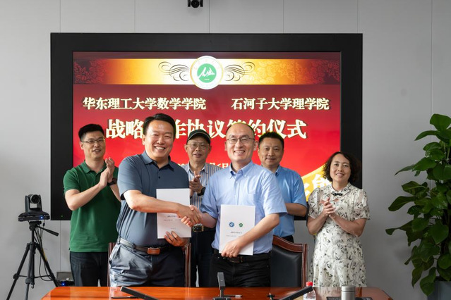 6月6日,华东理工大学数学学院与石河子大学理学院举行学科建设专题座谈会暨战略合作签约仪式。双方旨在通过深度合作,构建“东西联动、优势互补”的数学学科发展新格局。石河子大学党委常委、副校长李剑,理学院相关院领导及教师代表;华东理工大学数学学院党委书记鲍亮、院长林辉球、党委副书记王帅等参加活动。