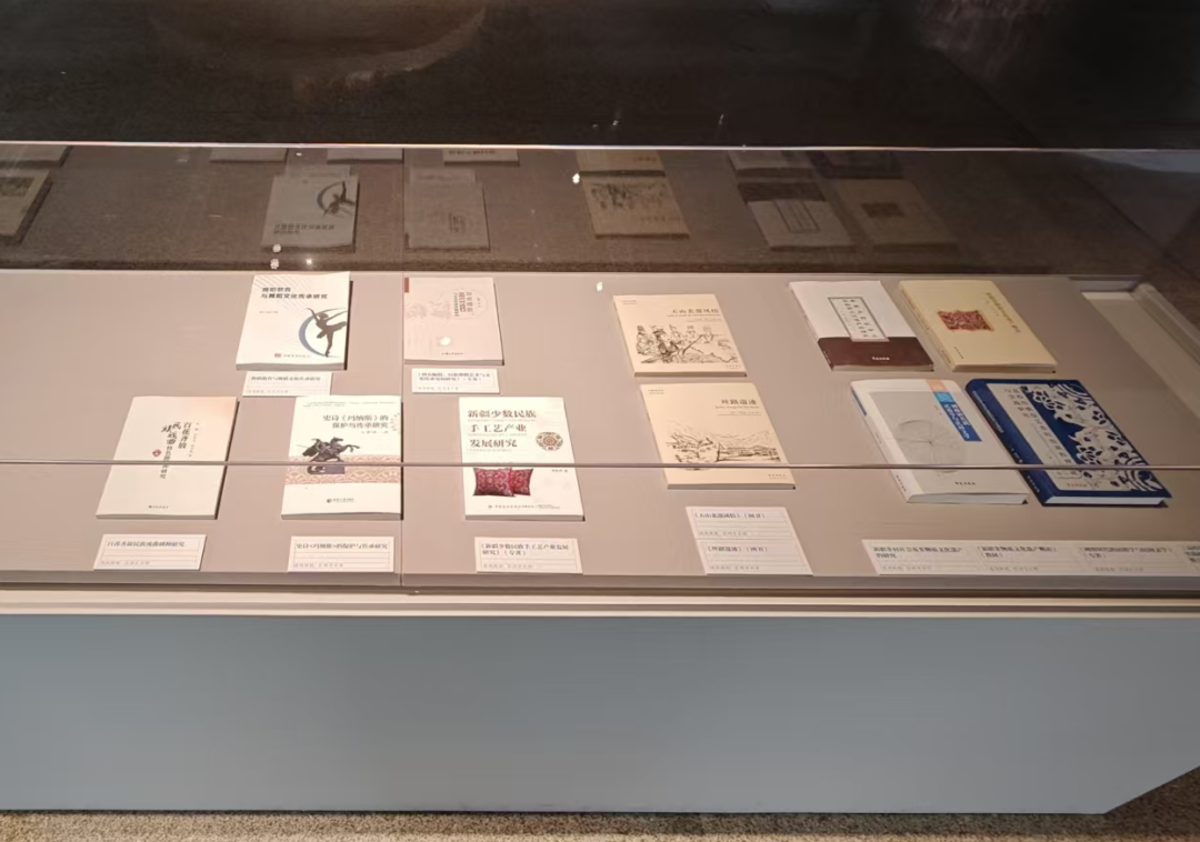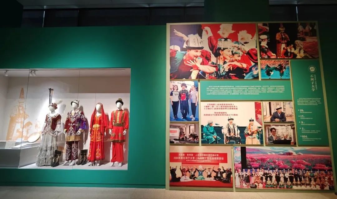 石河子大学受邀参加本次展览,共展出10余套研培作品(器物)、11部新疆非物质文化遗产相关著作。由我校推荐的《玛纳斯》史诗说唱作为全国仅两项入选作品之一,在“中国非物质文化遗产传承人研修培训计划十年成果展”开幕式上展演。