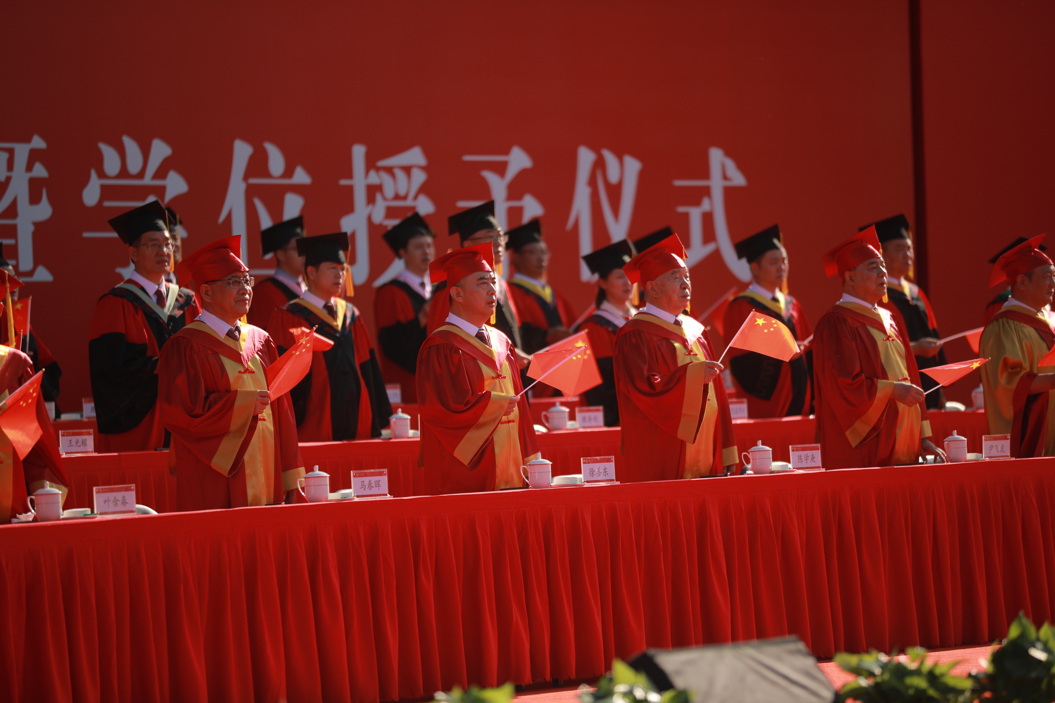 学校第九届学位评定委员会副主席,校党委常委、副校长魏忠宣读学位授予决定,陈学庚院士、尹飞虎院士和全体校领导为毕业生代表郑重授予学位。这一刻,承载着毕业生们多年的努力与汗水,也标志着他们正式开启人生新征程。