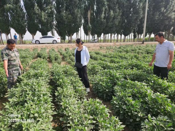 2025年6月18日,石河子大学特色蔬菜科技特派员服务团队走进第三师45团开展蔬菜花果期栽培技术服务。此次服务针对辣椒-孜然套种模式下孜然的长势、收获技术及产量等给出了增加孜然密度,改换孜然品种等建议。结合辣椒花果期的水肥管理提出了减氮增磷保根的技术方案。对大棚芦笋给出了培土、打顶和生根肥灌根的管理方案。