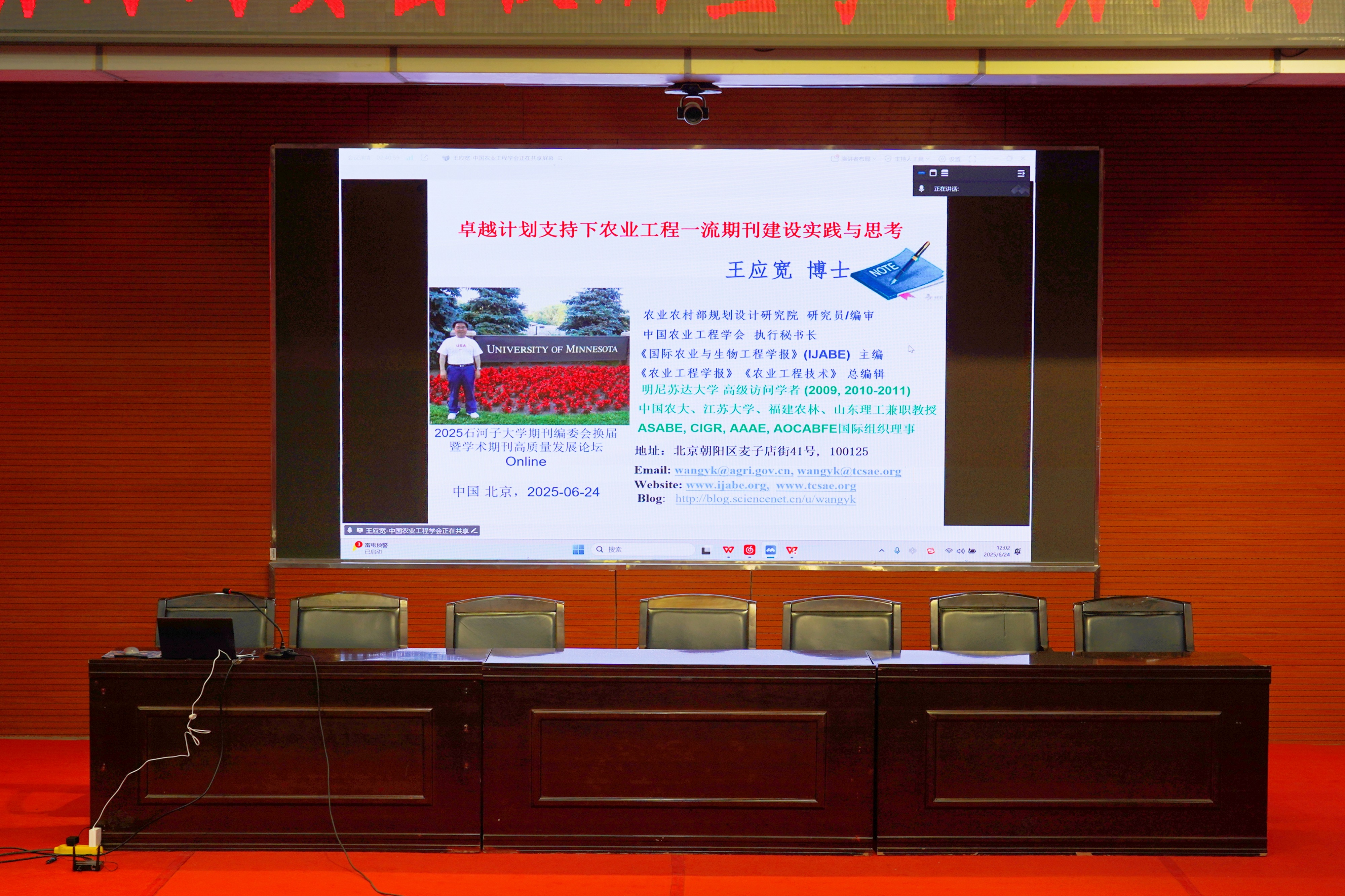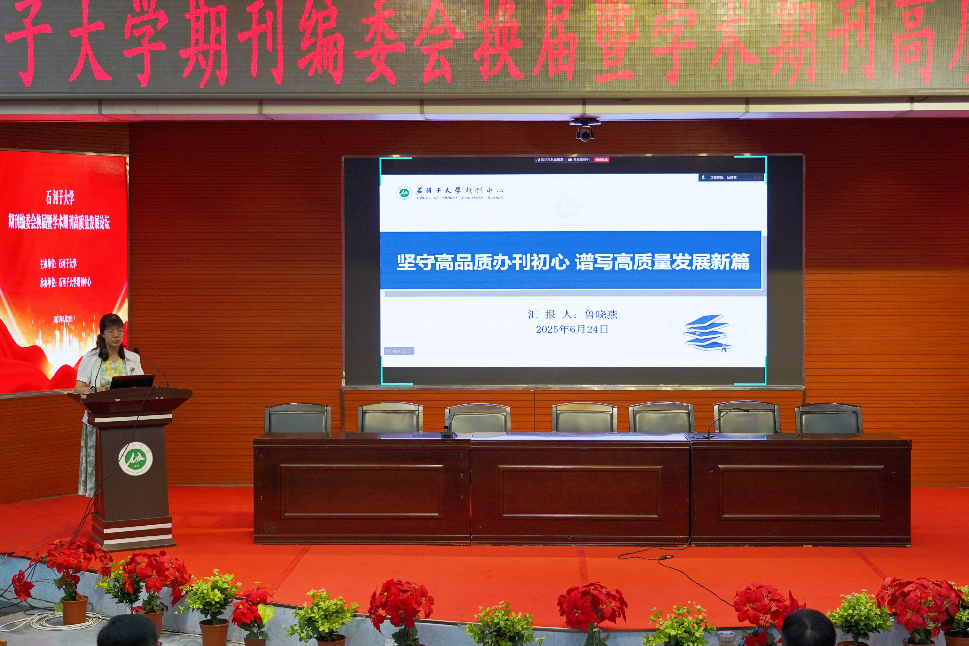 6月24日,石河子大学期刊编委会换届暨学术期刊高质量发展论坛在我校北区学术报告厅举行。石河子大学党委副书记、校长李兆敏,石河子大学原党委书记、《石河子大学学报(哲学社会科学版)》原主编,现任顾问夏文斌,石河子大学党委常委、副校长李剑,兵团党委宣传部新闻出版处负责同志参加会议。会议由石河子大学党委常委、副校长吴向未主持。
