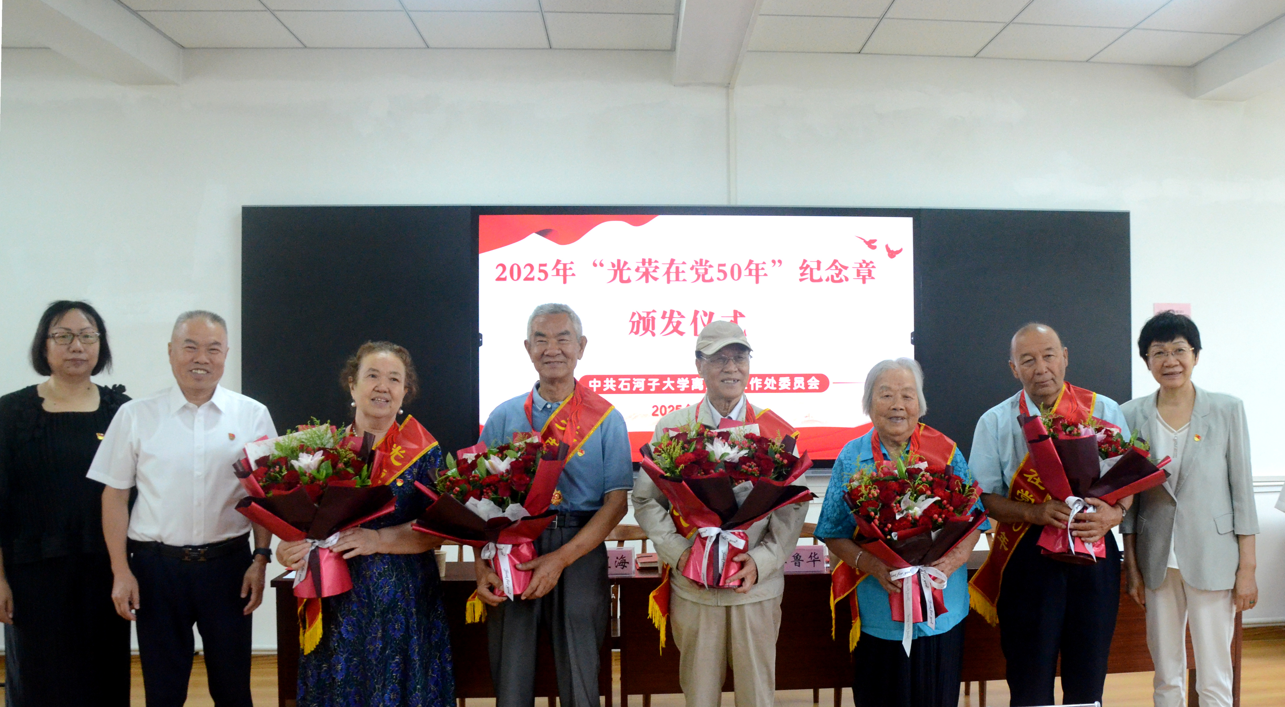 党委离退休工作部(离退休工作处)部长(处长)孙星海宣读了2025年“光荣在党50年”老党员名单,李鲁华为5名老党员代表颁发了纪念章并送上鲜花。与会领导还为老党员们赠送政治生日贺卡。