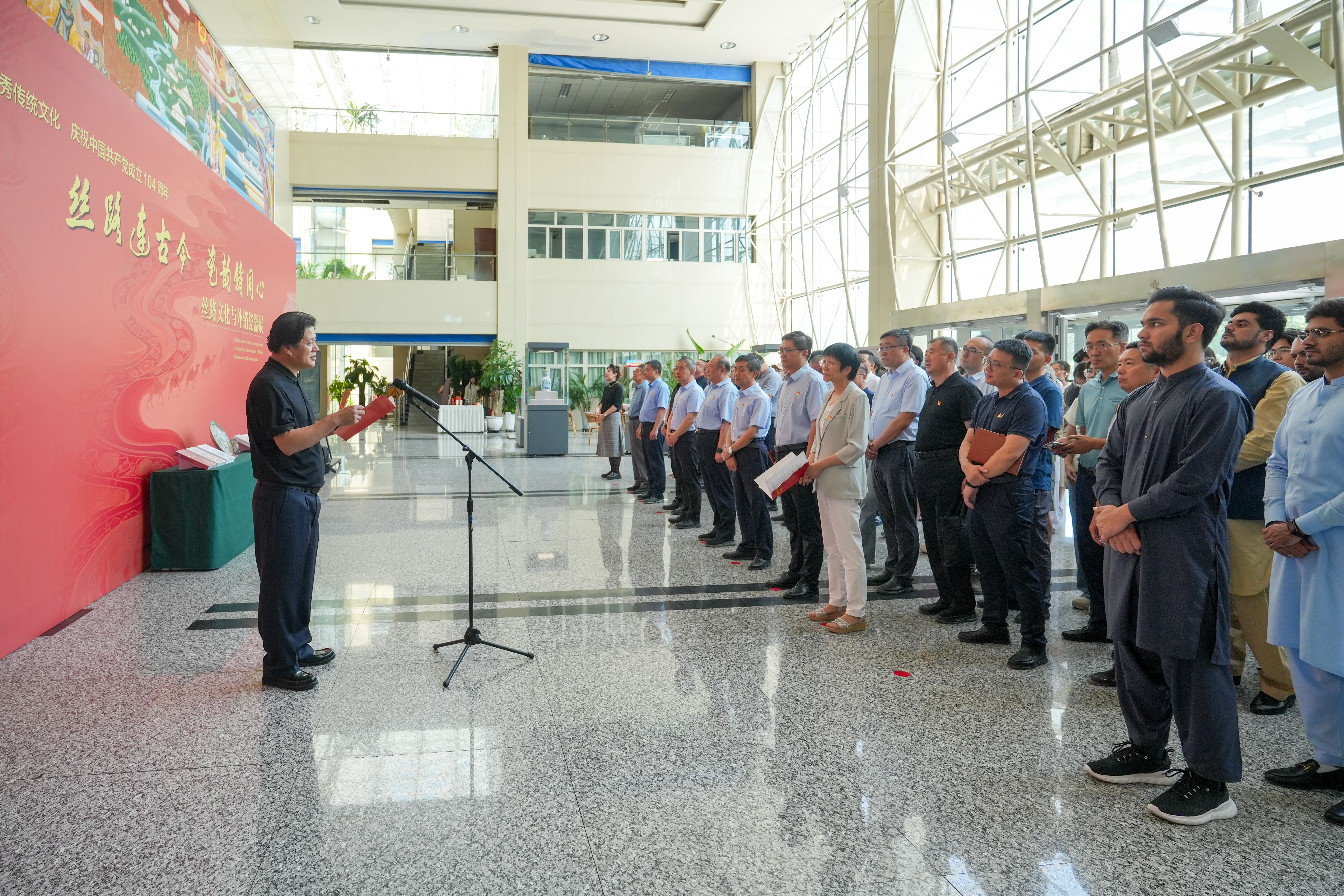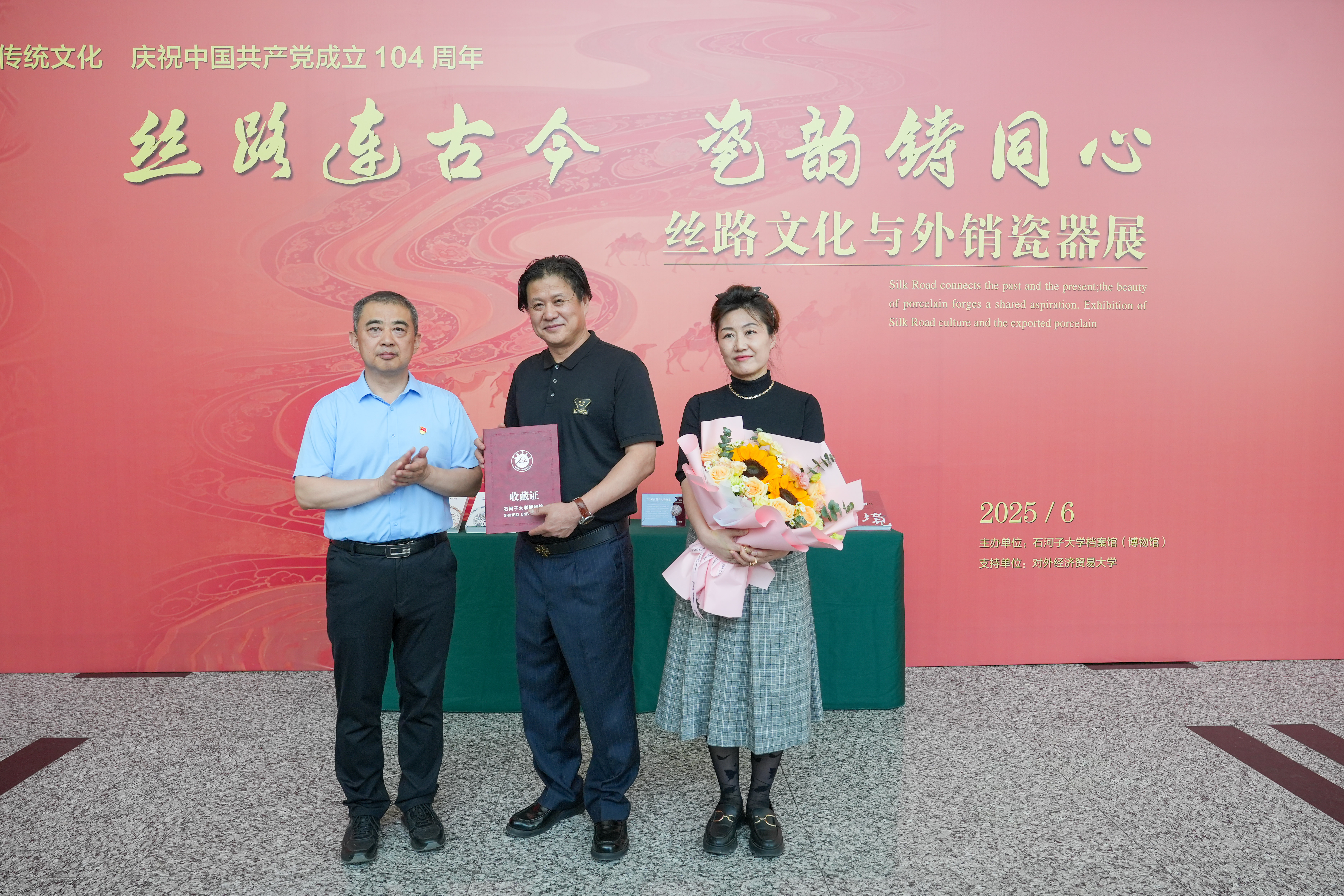 6月30日,一场承载着深厚文化底蕴与历史意义的“丝路文化与外销瓷器展”在我校开展。对外经济贸易大学矫克华教授、李梅老师,石河子大学校领导徐善东、李兆敏、马春晖、牛新民、叶含春、李剑、吴向未,石河子大学关心下一代工作委员会常务副主任张法林,以及学校各职能部门、相关学院领导与师生代表参加开展仪式。校党委常委、副校长,组织部部长李鲁华主持开展仪式。