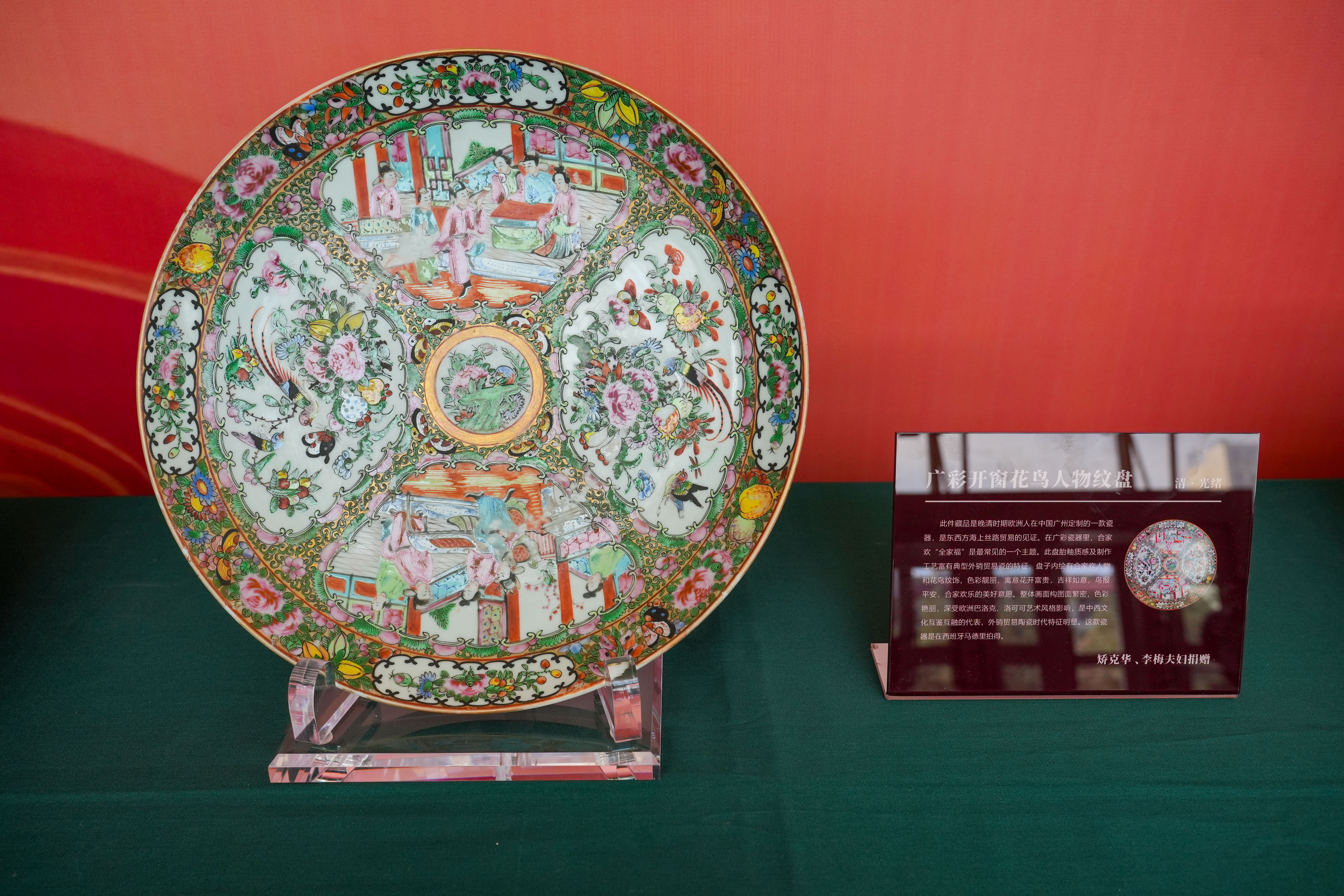 此次展出的17件珍贵外销瓷器展品均来自对外经济贸易大学(由矫克华教授和李梅老师捐赠)。矫克华教授、李梅老师向石河子大学捐赠了一款晚清时期欧洲人在中国广州定制的广彩开窗花鸟人物纹盘及三套书籍。