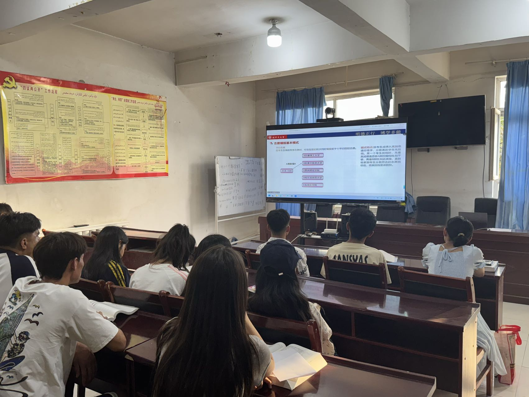 近日,石河子大学驻喀什地区布拉克苏乡比仁其英其开村工作队队员在走访中发现,本村高考生在志愿填报时普遍对院校选择、专业方向存在困惑。为精准助力学子明晰政策、科学规划,6月27日,布拉克苏乡比仁其英其开村工作队组织开展“情系学子 助力圆梦”高考志愿填报专项辅导活动,面向全乡17个村近300名考生开展专业讲解。邀请石河子大学教务处招生办公室孙梦琪老师、党委学生工作部(学生处)就业办公室严鑫老师担任主讲,以“云端讲座+各村线下分会场”的形式同步进行。