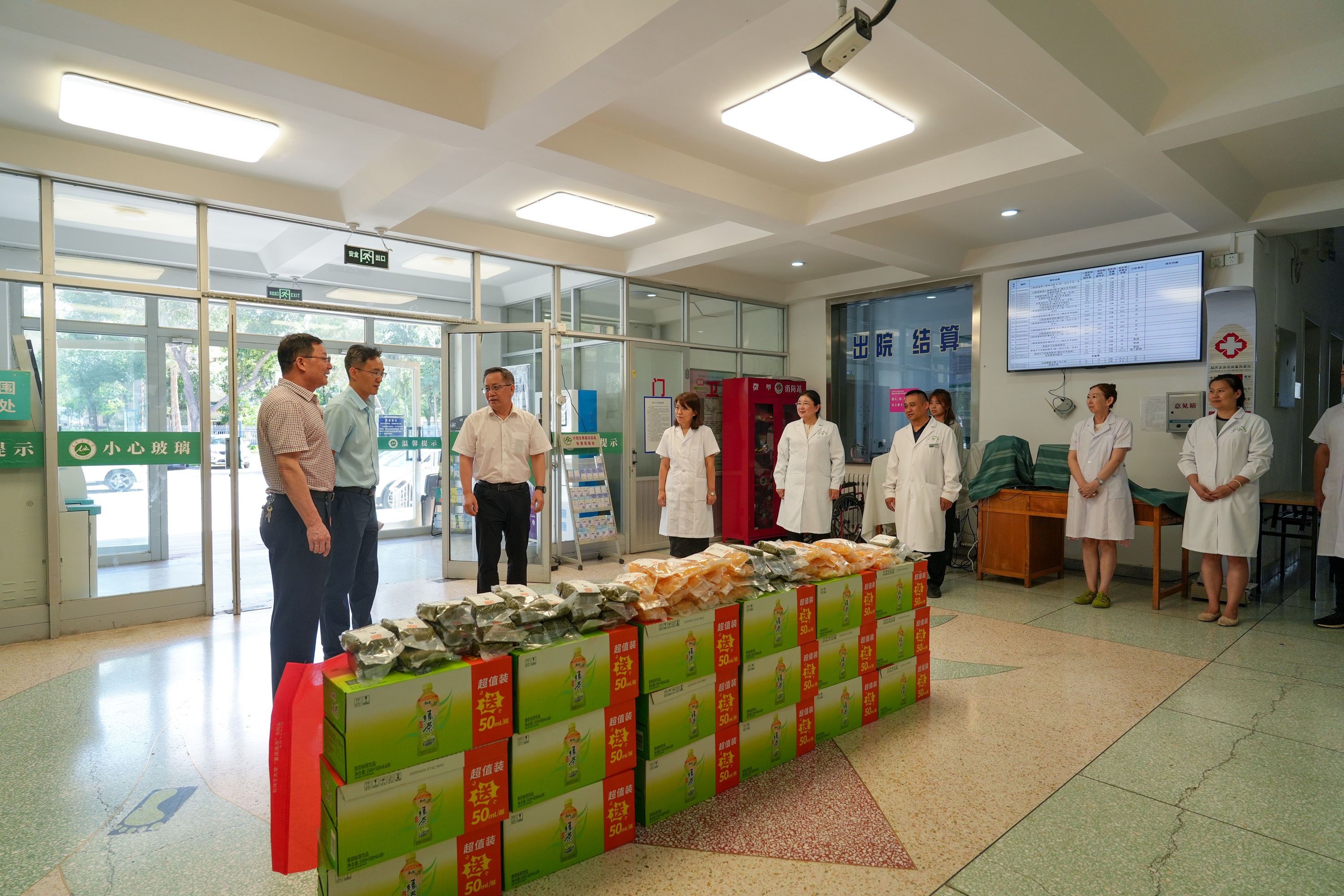 慰问组一行先后来到校区大门岗亭值班室、基建处、后勤管理处(后勤服务中心)、校医院、教务处招生办公室,为一线教职工送上绿茶、绿豆、冰糖、方便面、防暑药包及降温用品。马春晖向高温天气下坚守岗位的教职工表示感谢,叮嘱他们合理安排作息时间,在高温环境下工作时注意防暑降温,确保自身健康与安全,为保障学校的正常运转和发展贡献力量。