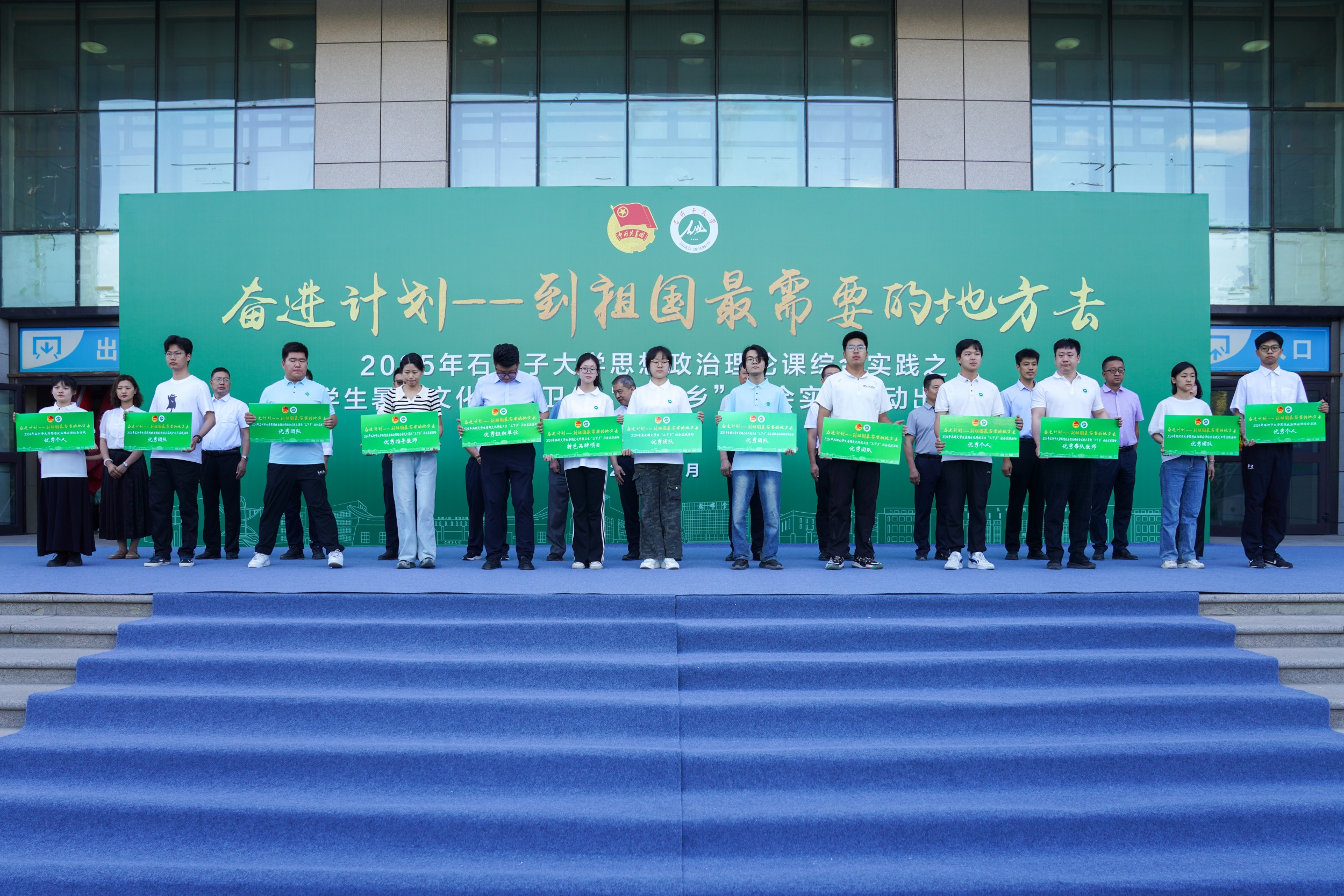 仪式上对2024年“三下乡”活动中涌现的国家级、兵团级和校级优秀团队进行了表彰。